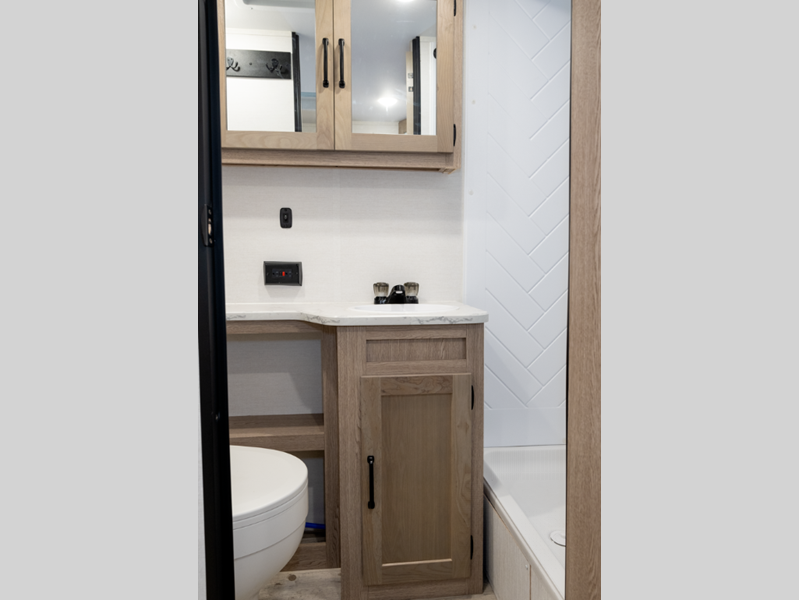 Sleeps 8 Slides 1 Length 29 ft 6 in Ext Width 8 ft Ext Height 11 ft 1 in Int Height 6 ft 8 in Hitch Weight 660 lbs Dry Weight 5177 lbs Cargo Capacity 2483 lbs Fresh Water Capacity 23 gals Grey Water Capacity 33 gals Black Water Capacity 34 gals Tire Size 14" Furnace BTU 20000 btu Number Of Bunks 2 Available Beds Queen Refrigerator Type Everchill Refrigerator/Freezer Refrigerator Size 10.7 cu ft Cooktop Burners 3 Number of Awnings 1 LP Tank Capacity 20 lbs Water Heater Type Tankless AC BTU 13500 btu Awning Info Electric with LED Lights Axle Count 2 Number of LP Tanks 2 Shower Type Tub/Shower Combo Electrical Service 30 amp Similar Floorplans
