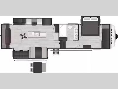 The dual opposing slides in the combined kitchen and living area will give you an open floorplan! You'll sleep on the queen-size bed in the front private bedroom, and there is under-bed storage, a full-height wardrobe, and a dresser with hidden storage for all of your personal belongings. As you spend time in the main living area, you'll appreciate having extra space thanks to the set of opposing slides, and the kitchen island will be easy to work around. You'll be able to relax on the tri-fold sleeper sofa and theater seating while you watch the LED HDTV with an pivoting entertainment door and hidden pantry. There is also a booth dinette with storage drawers, convenient shoe storage right as you enter the unit, and an exterior unobstructed pass-thru storage so nothing gets left behind.
