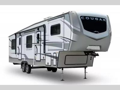 Spend more time having fun and less time worrying about your RV with the Keystone Cougar fifth wheel! These units have all that you will need for excellent vacations. The interior comes with 5/8" one-piece DynaSpan® flooring, tall slide outs for added comfort and head room, night roller shades throughout, and residential, shaker style hardwood cabinet doors and drawers. You will also enjoy decorative crown molding, a 5,500 BTU electric fireplace with thermostat control and remote, and a Max Air exhaust fan with rain sensor. The exterior is also fully outfitted with a convenience center, friction-hinge entry door, electric four-point auto leveling system, and slam-latch baggage doors. Each model is available with the optional Hero Edition. By choosing this edition, you can help support our nation's heros and their families by contributing to the Wounded Warrior Project. This optional package features an industry exclusive full-body paint matte finish, frameless windows, a glass entry door, blackout rims, and green LED exterior accent lighting; see dealer for more details!