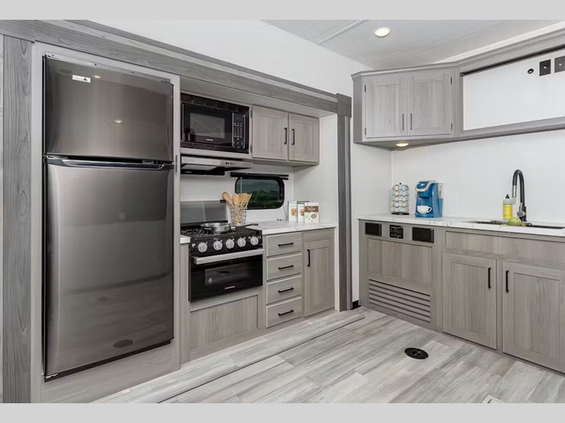 Sleeps 6 Slides 1 Length 33 ft 5 in Ext Height 12 ft 5 in Int Height 6 ft 5 in Interior Color WFO Hitch Weight 1140 lbs Dry Weight 7782 lbs Cargo Capacity 3518 lbs Fresh Water Capacity 54 gals Grey Water Capacity 30 gals Black Water Capacity 30 gals Tire Size ST225/75R15E Furnace BTU 30000 btu Number Of Bunks 1 Available Beds RV Queen Refrigerator Type 12 Volt Refrigerator Size 10.7 cu ft Cooktop Burners 3 Number of Awnings 1 Axle Weight 6000 lbs Garage Size 15 ft LP Tank Capacity 30 lbs Water Heater Type Girard Tankless On Demand AC BTU 15000 btu Awning Info 18' Power One-Touch w/LED Lights Axle Count 2 Number of LP Tanks 2 Shower Type Standard Electrical Service 30 amp Similar Floorplans