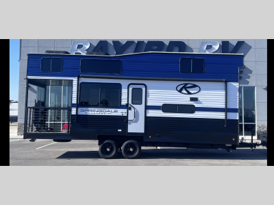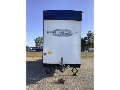 With any Springdale travel trailer by Keystone you will enjoy convenient amenities and comfortable camping features at every turn. The aluminum exterior will be easy to clean, and the power awning provides protection against the hot summer sun. There is also an exterior shower, a walkable roof, and an XL entry assist handle to safely enter and exit the unit. You will find many comforts inside, including a stainless steel sink, ample storage space for your belongings, and cozy sleeping spaces. Start a new adventure today in a Springdale travel trailer!
